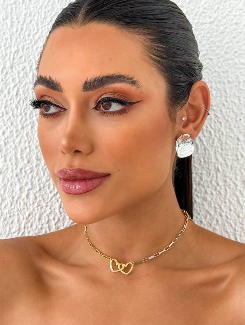 Colar Folheado a Ouro 18k e Prata Mix Banho Corrente Quadrada com Corações