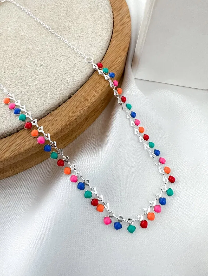 3. Colar Folheado a Ouro 18k e Prata Pingentes Resinados