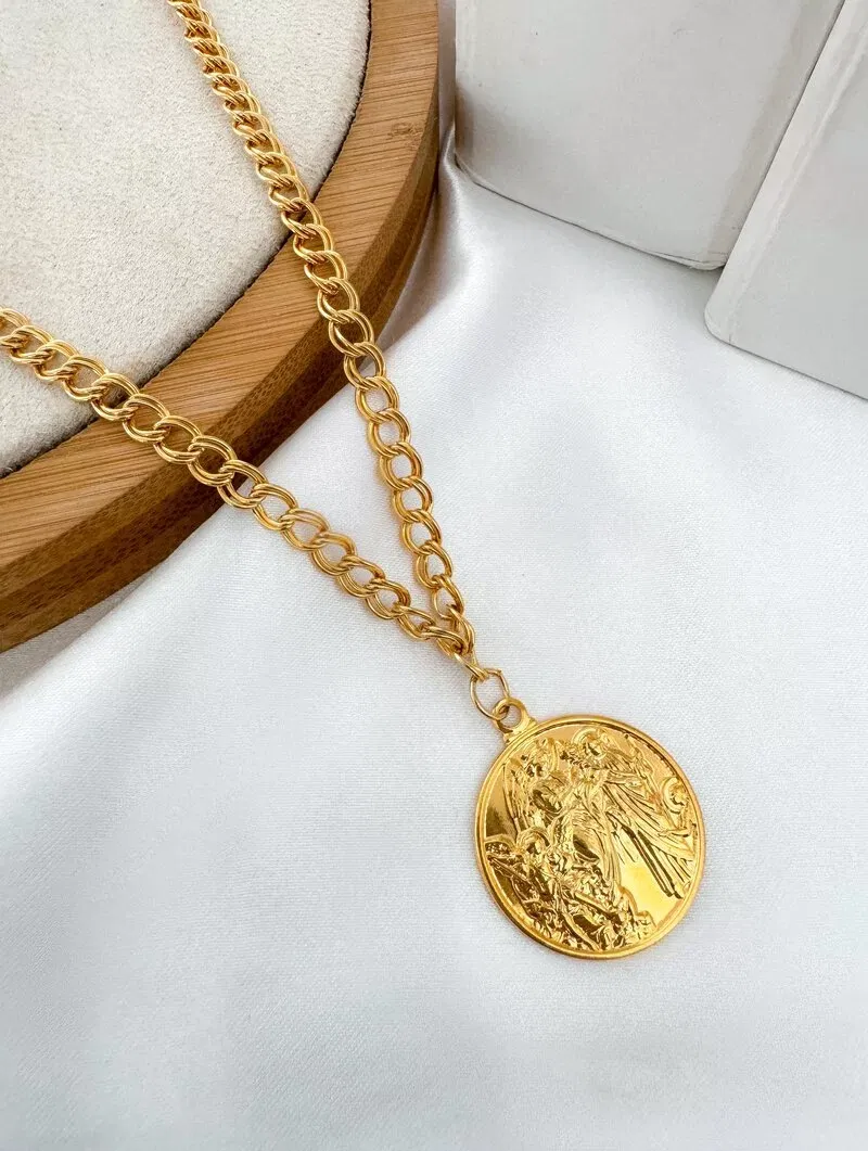 3. Colar Folheado a Ouro 18k Elos Duplo com Pingente Anjos