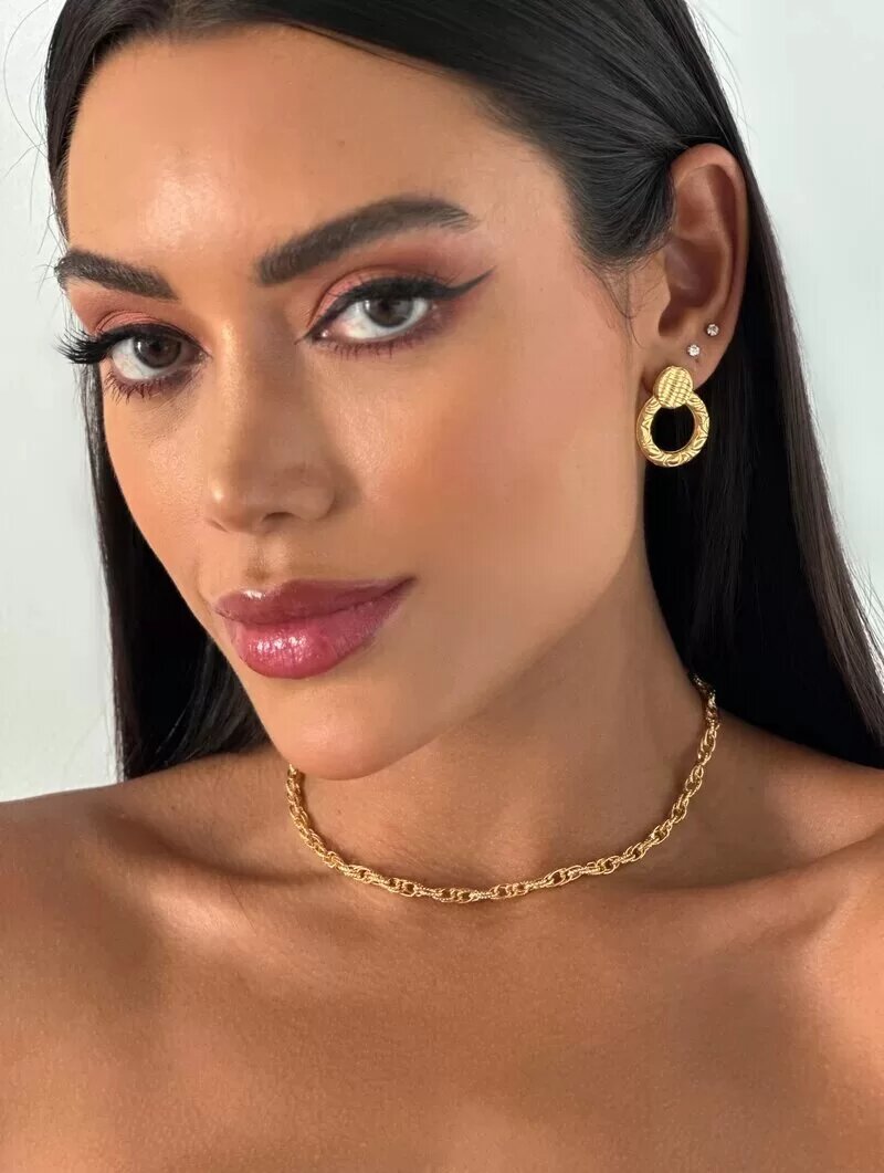 3. Colar Folheado a Ouro 18k Elos Duplo Texturizados