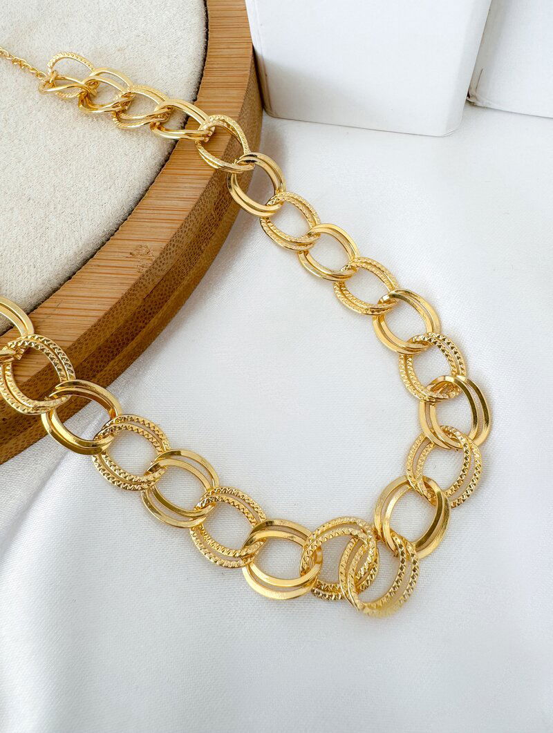 3. Colar Folheado a Ouro 18k Elos Duplos Texturizados