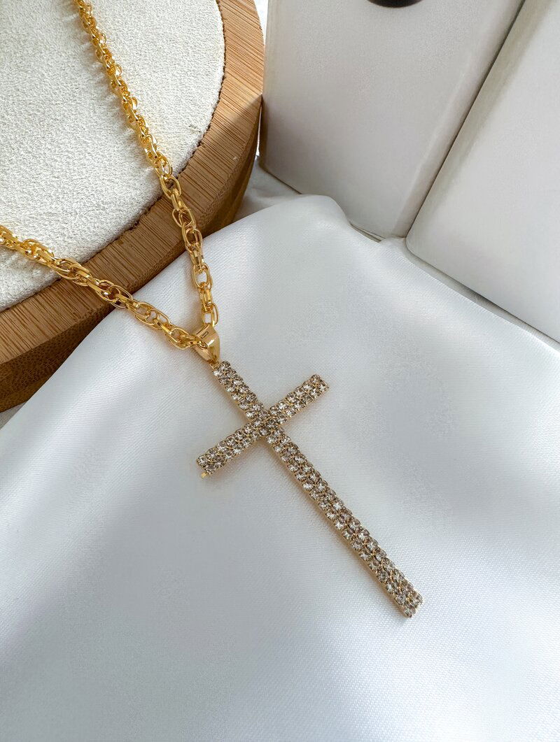 3. Colar Folheado a Ouro 18k Elos Entrelaçados com Cruz de Micro Zircônias