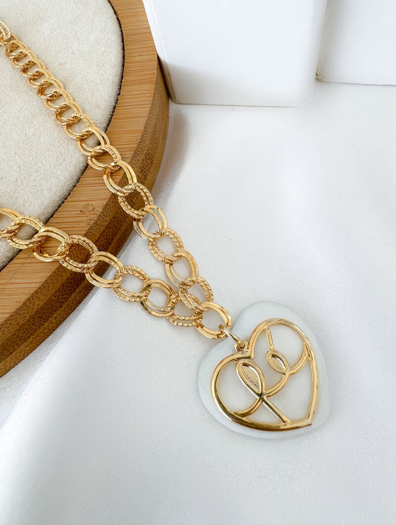 3. Colar Folheado a Ouro 18k Elos Texturizados com Coração Madrepérola Fé