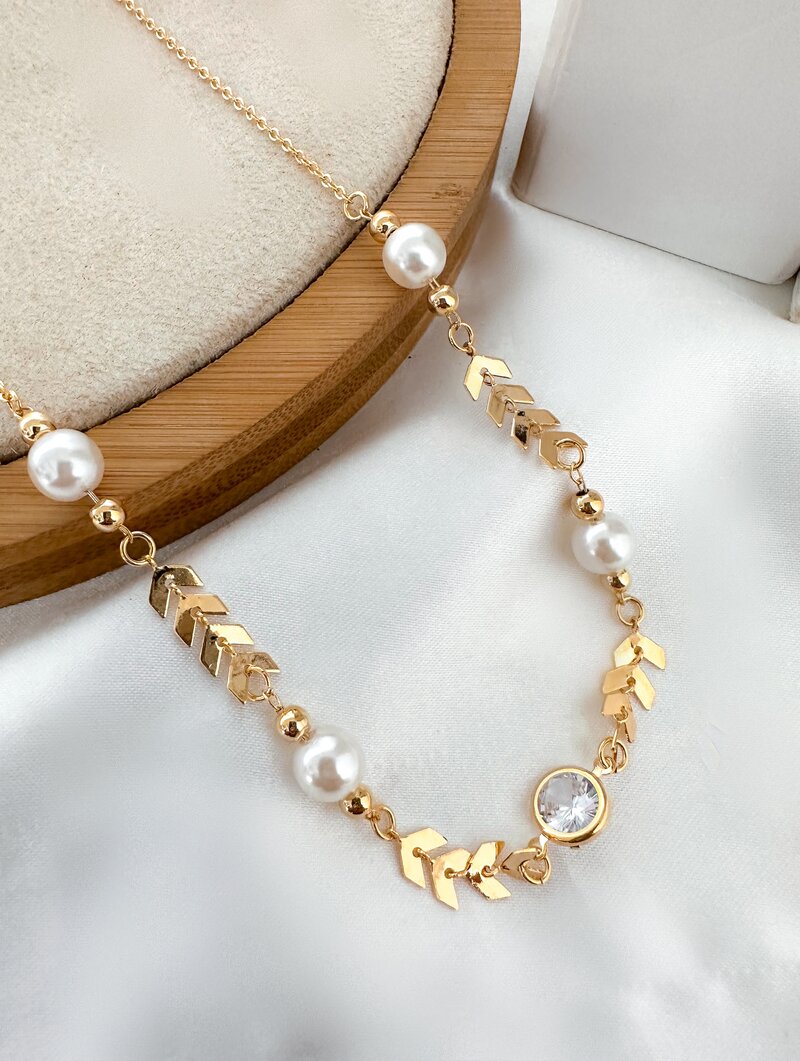 Colar Folheado a Ouro 18k Escamas com Pérolas