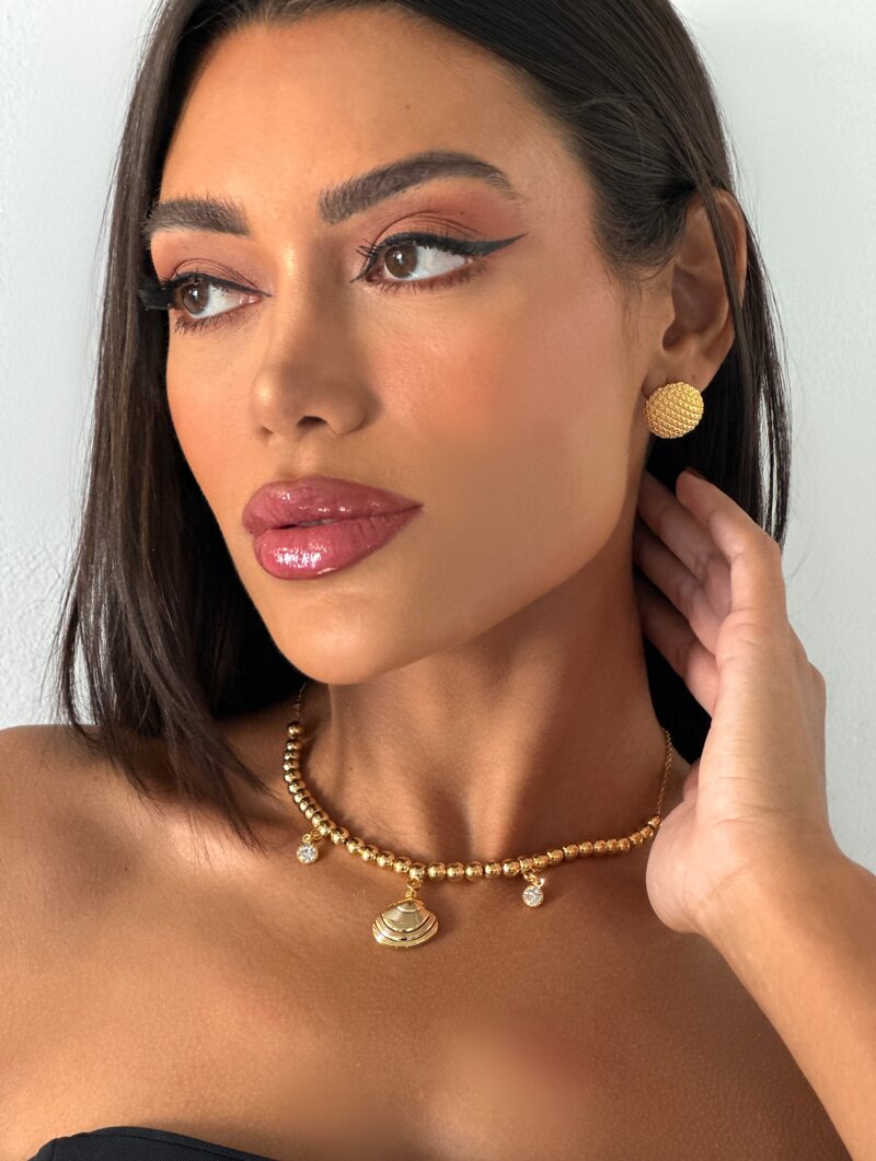3. Colar Folheado a Ouro 18k Esferas com Concha e Pontos de Luz