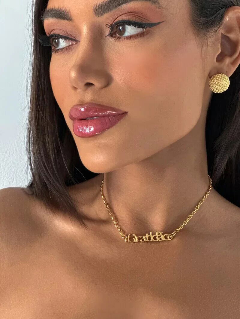 COLAR FOLHEADO A OURO 18K GRATIDÃO.