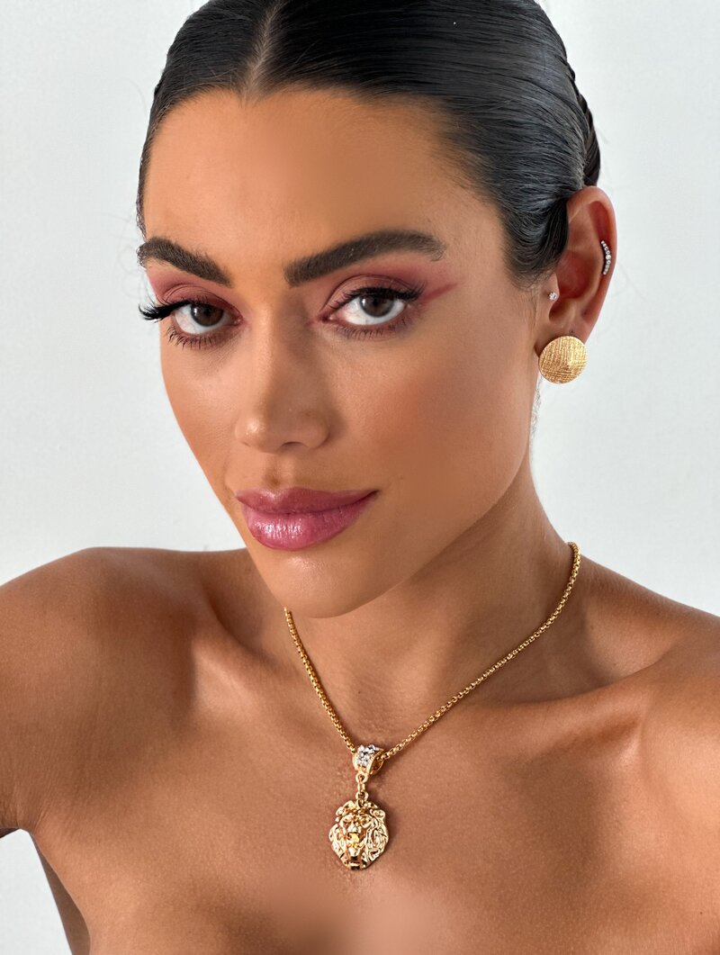 3. Colar Folheado a Ouro 18k Leão Com Ponteira Cravejada