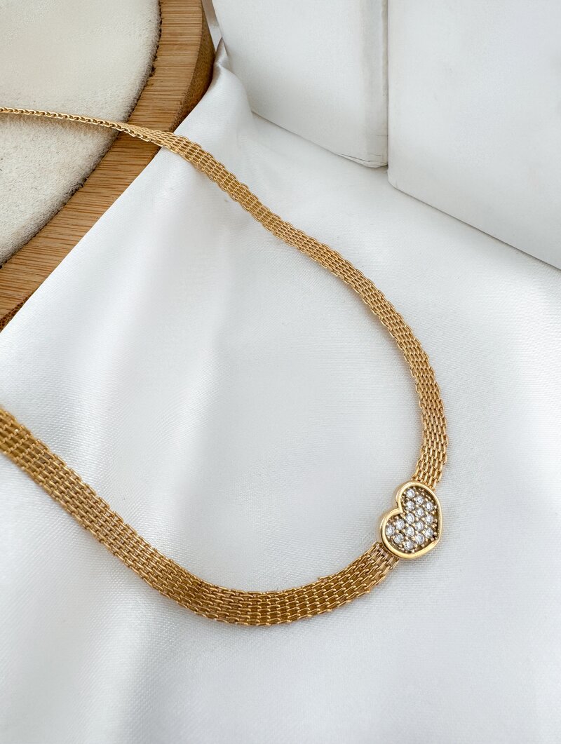 Colar Folheado a Ouro 18k Manta com Coração Cravejado