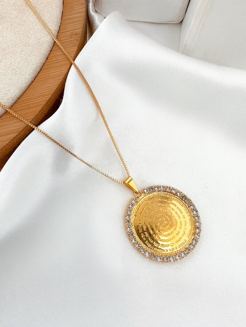 3. Colar Folheado a Ouro 18k Medalha Pai Nosso com Borda Cravejada