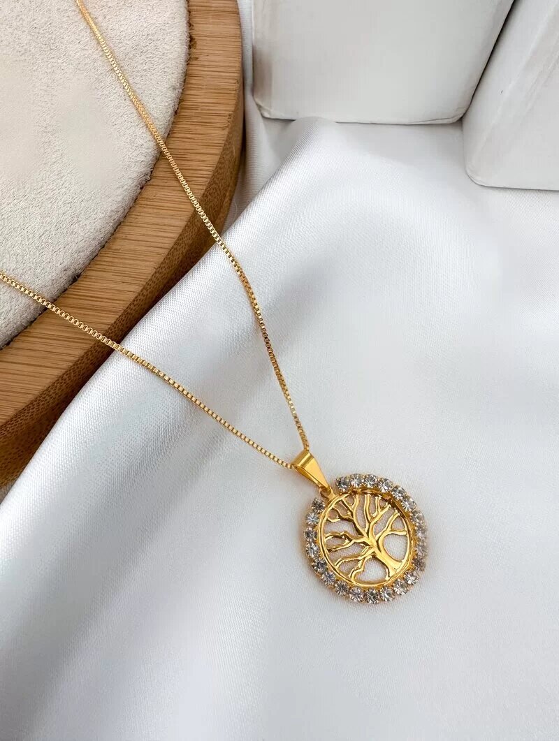 Colar Folheado a Ouro 18k Pingente Árvore da Vida