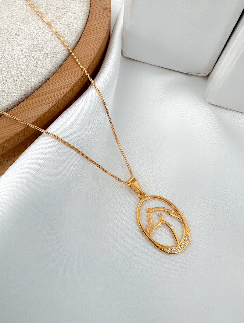 3. Colar Folheado a Ouro 18k Pingente Cavalo Vazado