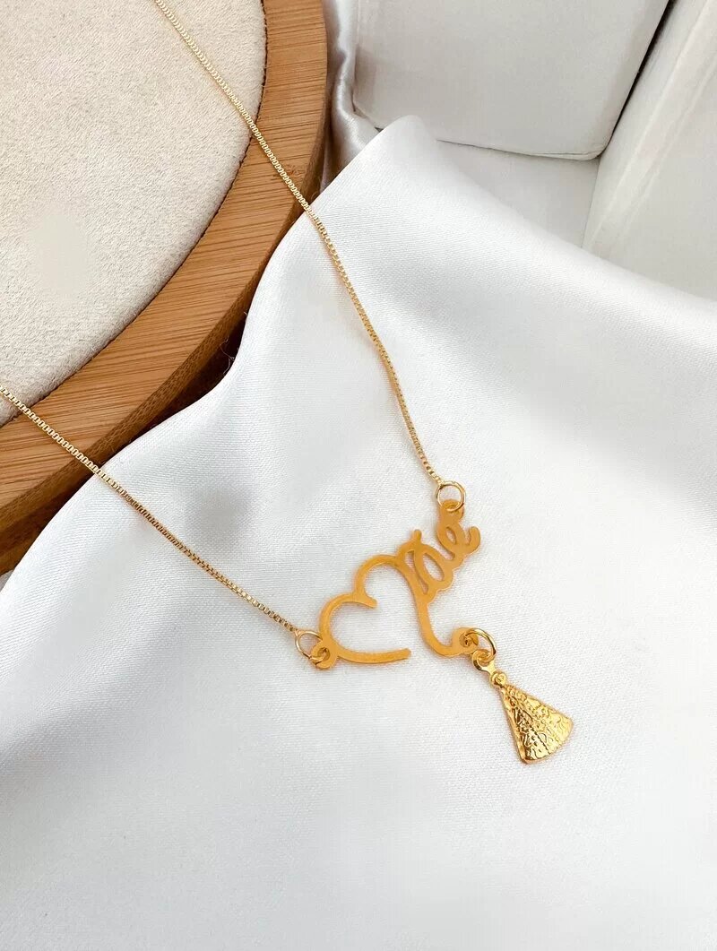 Colar Folheado a Ouro 18k Pingente Mãe e Nossa Senhora