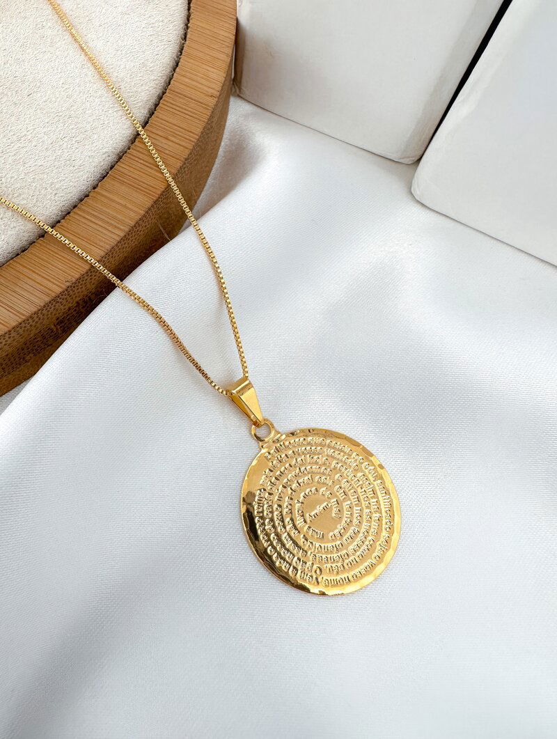3. Colar Folheado a Ouro 18k Pingente Medalha Pai Nosso