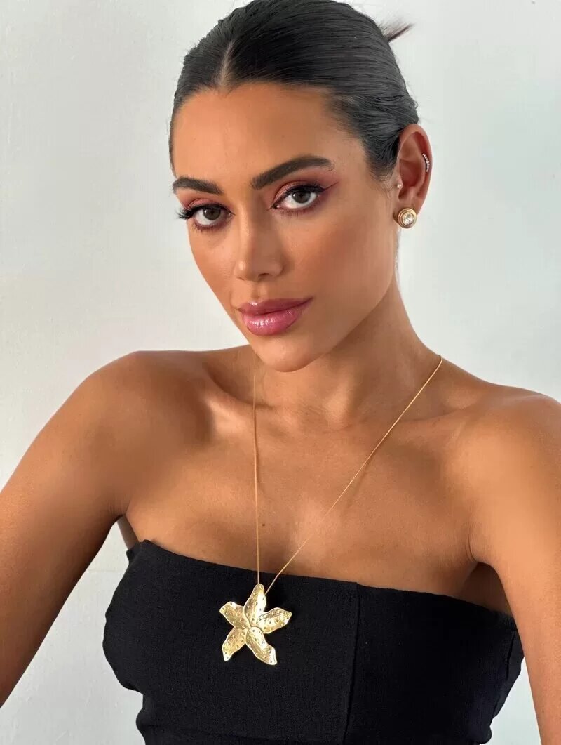 Colar Folheado a Ouro 18K Veneziana Com Pingente Flor