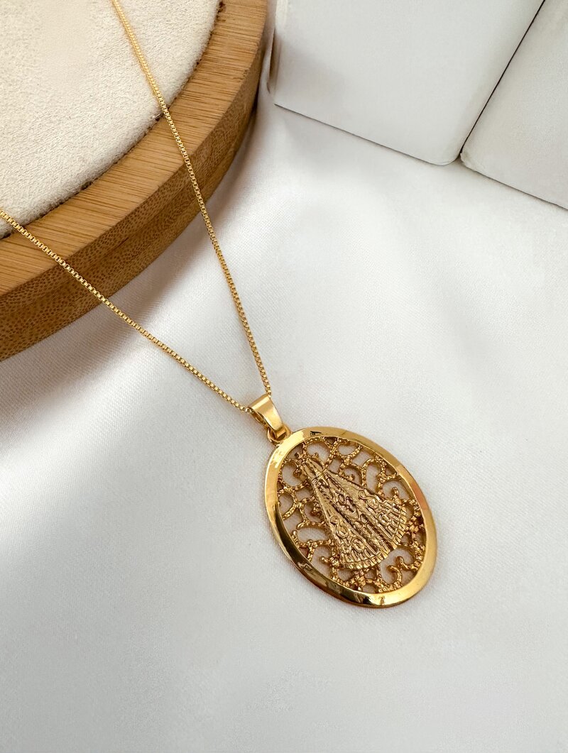 Colar Folheado a Ouro 18k Veneziana com Pingente Nossa Senhora