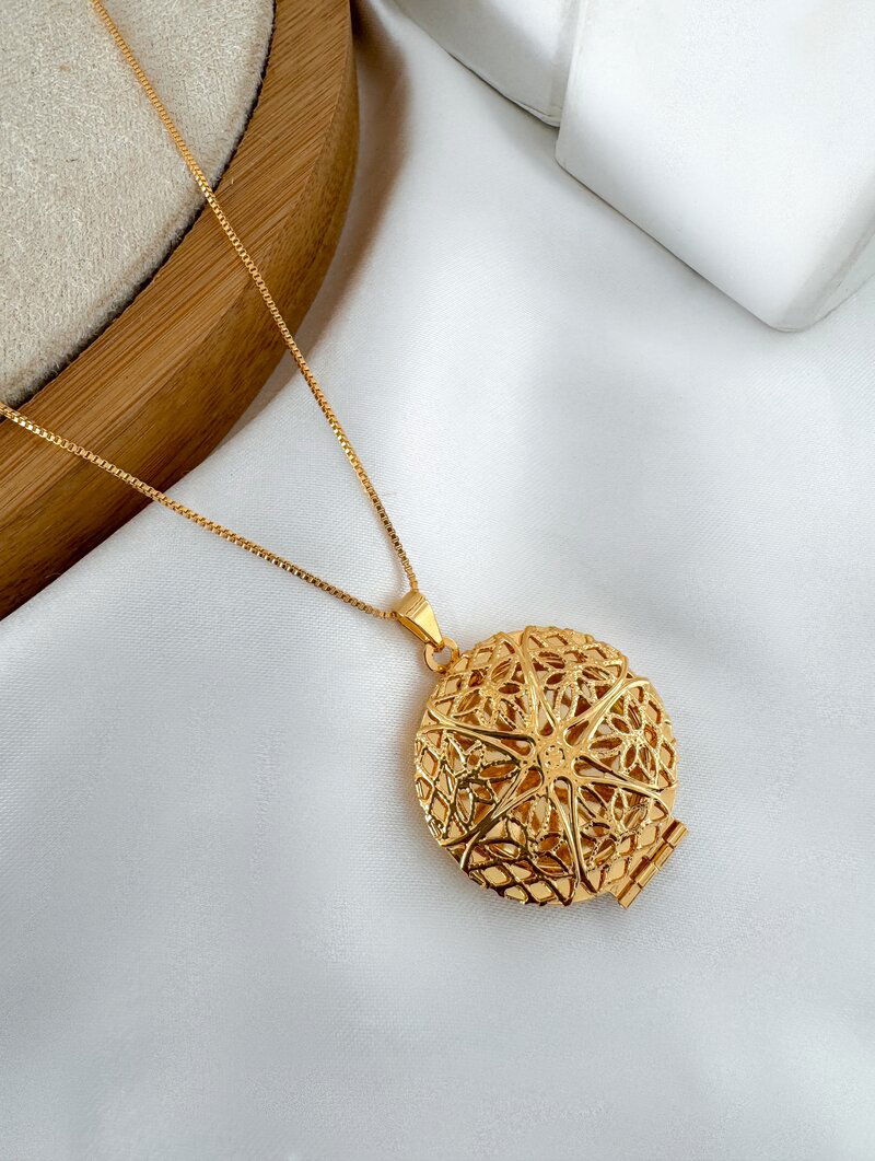 3. Colar Folheado a Ouro 18k Veneziana com Relicário Circulo Trabalhado