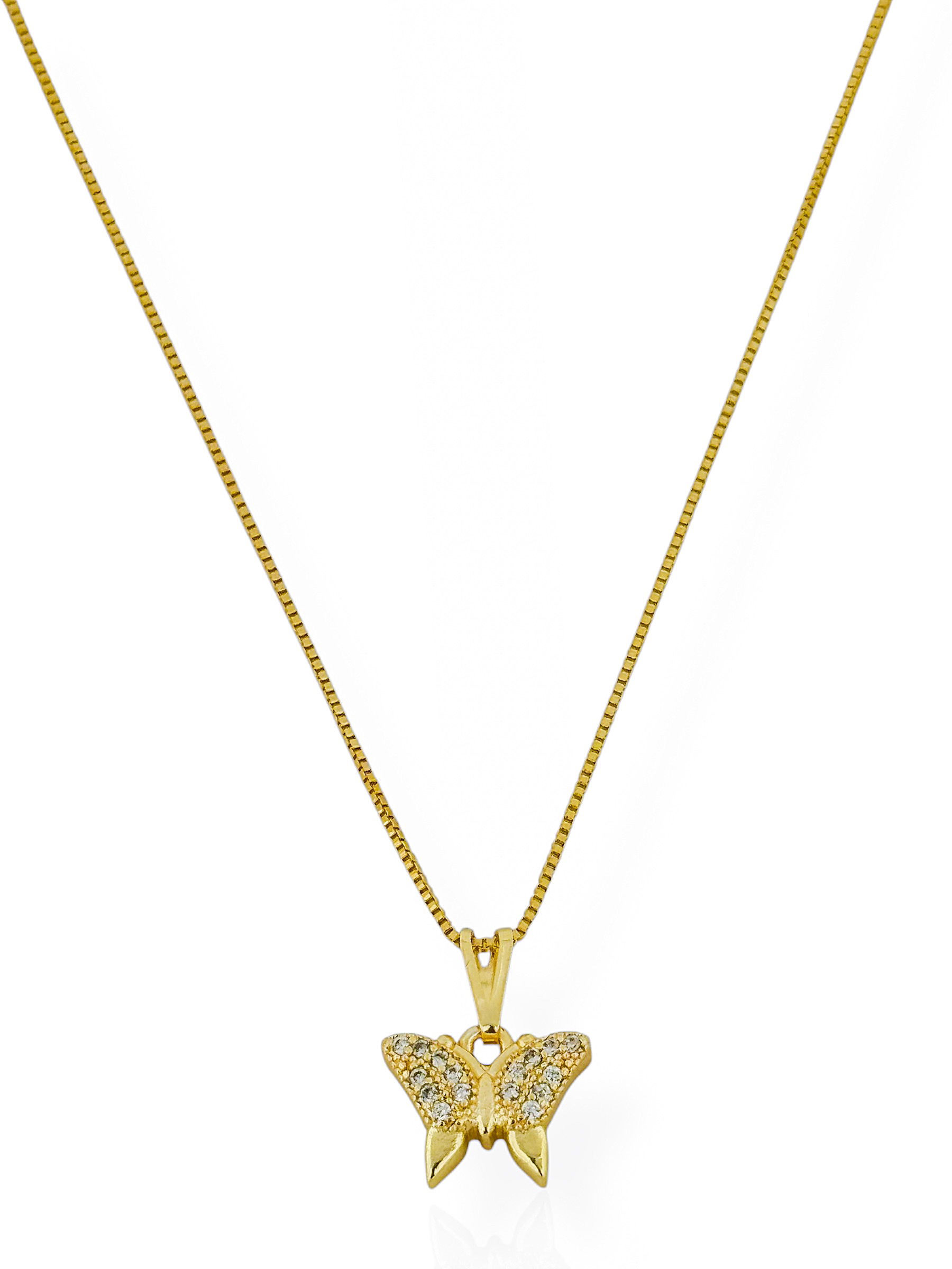 2. Colar Folheado a Ouro 18k Veneziana Pingente Borboleta Cravejada