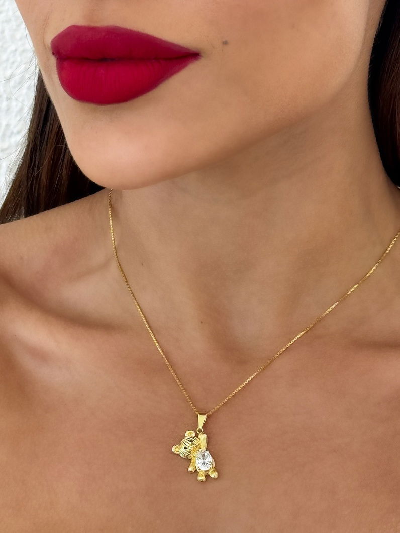 Colar Folheado a Ouro 18K Veneziana Pingente Ted Com Cristal