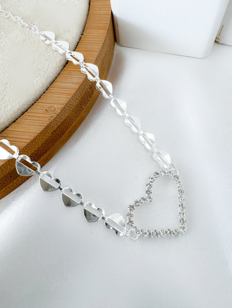 Colar Folheado a Prata 925 Corações Lisos com Pingente Cravejado