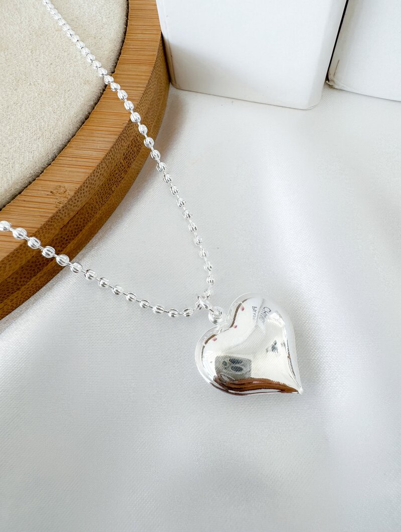 Colar Folheado a Prata 925 Corrente de Mini Esferas com Coração Liso
