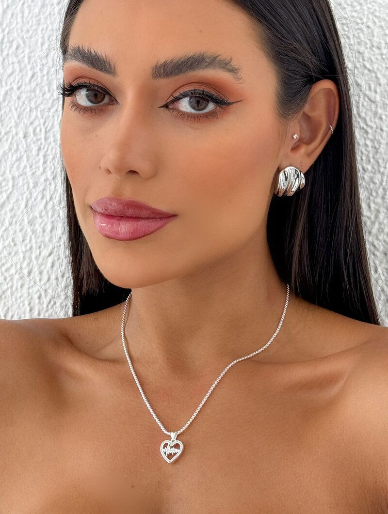 Colar Folheado a Prata 925 Corrente Fina com Coração Batimentos