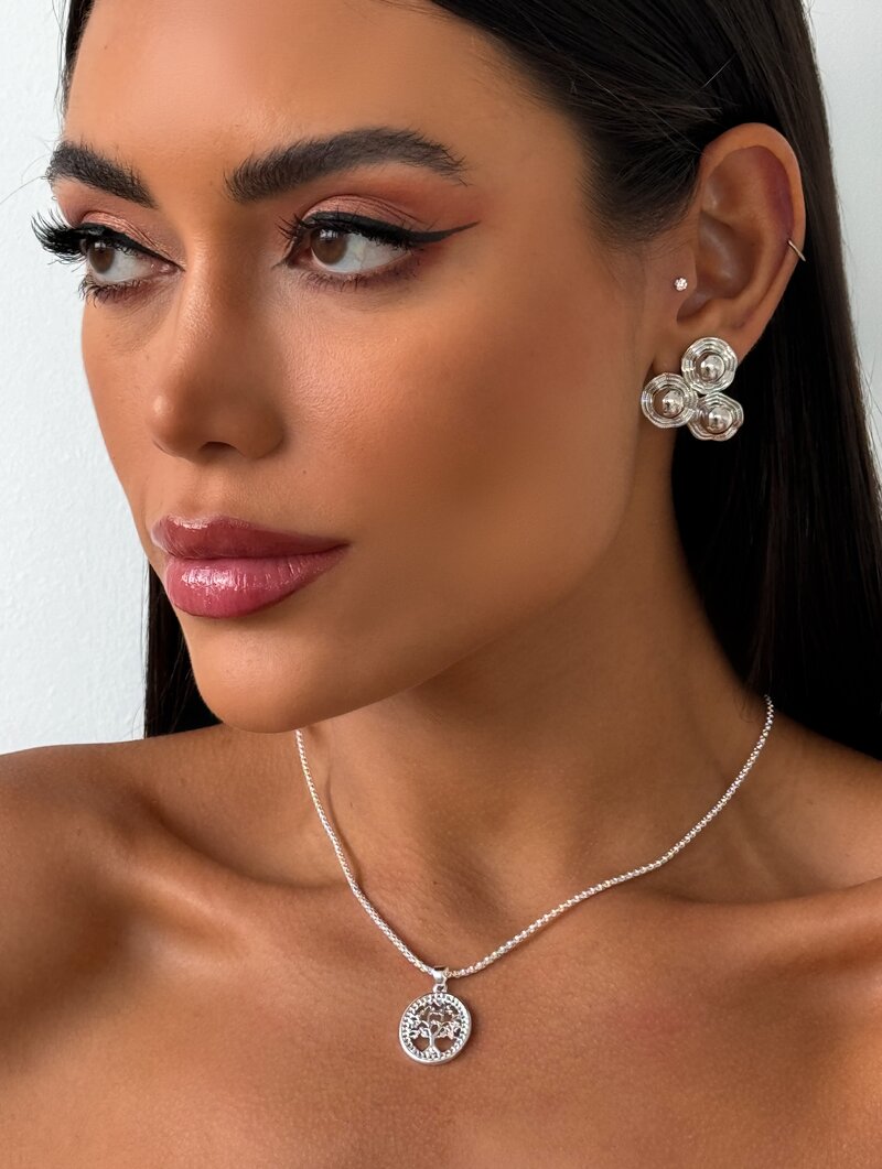 Colar Folheado a Prata 925 Corrente Quadrada Fina com Pingente Árvore da Vida