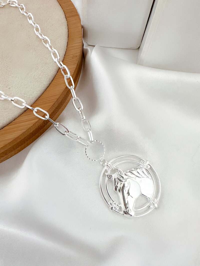 Colar Folheado a Prata 925 Elos com Pingente Cavalo