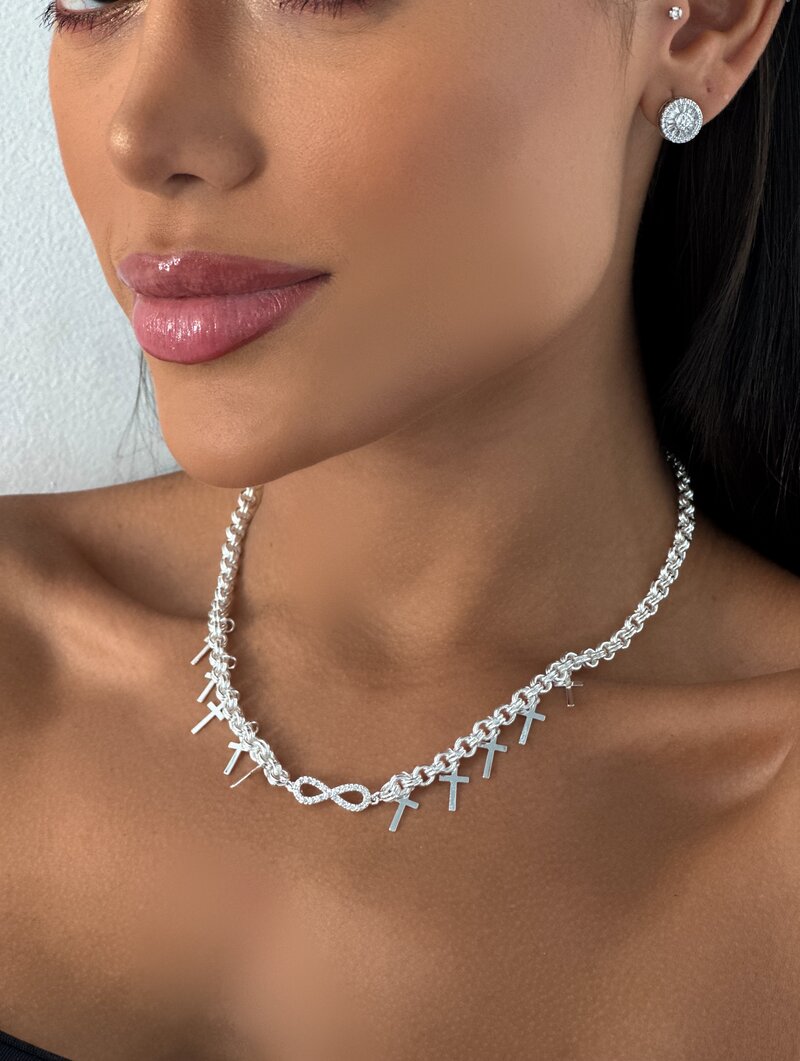Colar Folheado a Prata 925 Elos Duplos com Crucifixos