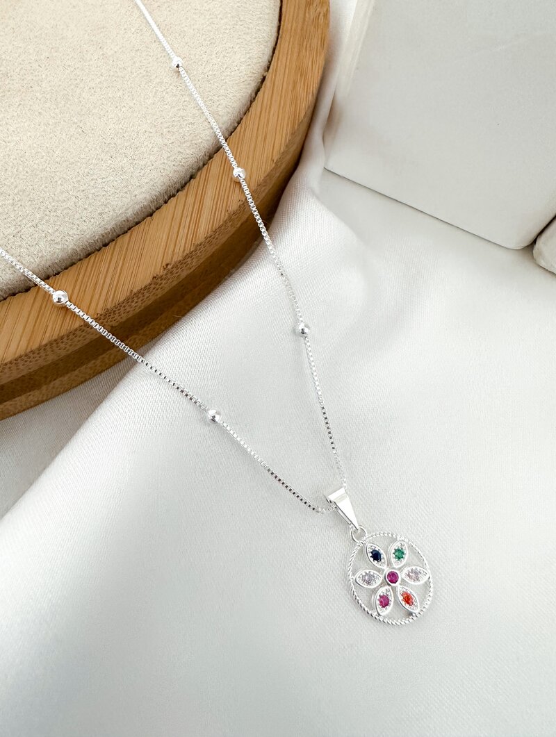 3. Colar Folheado a Prata 925 Flor com Micro Zircônias Coloridas
