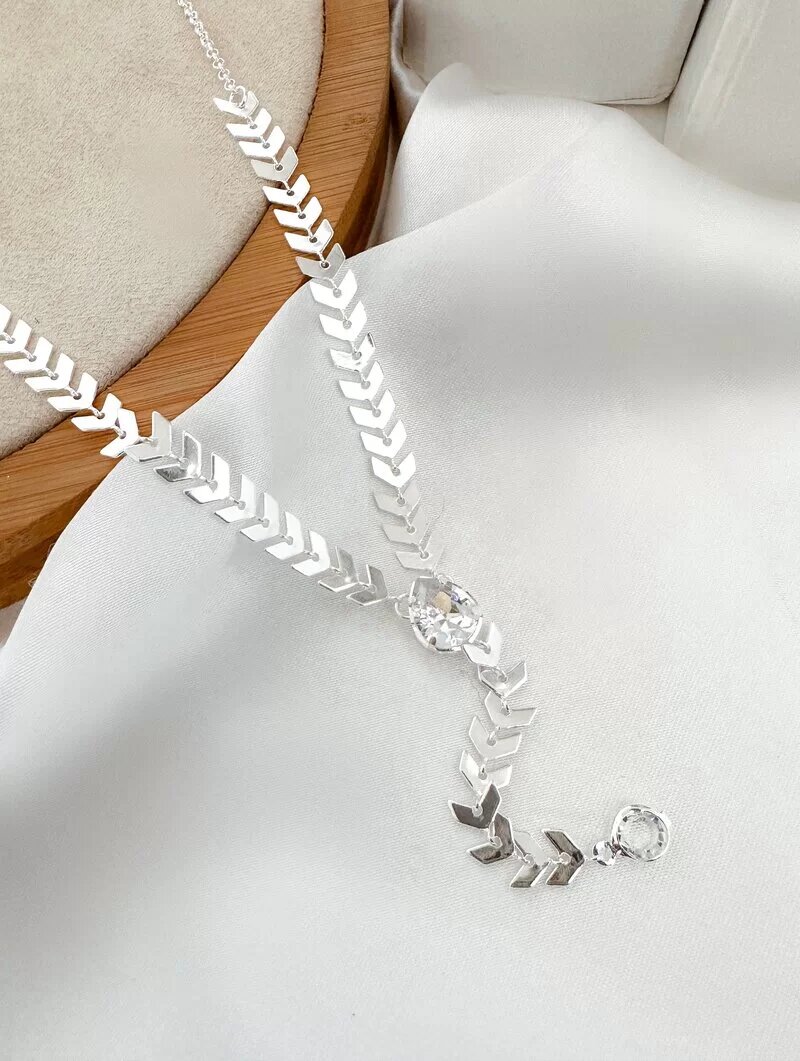 Colar Lariat Folheado a Ouro 18k e Prata 925 Escamas com Ponto de Luz