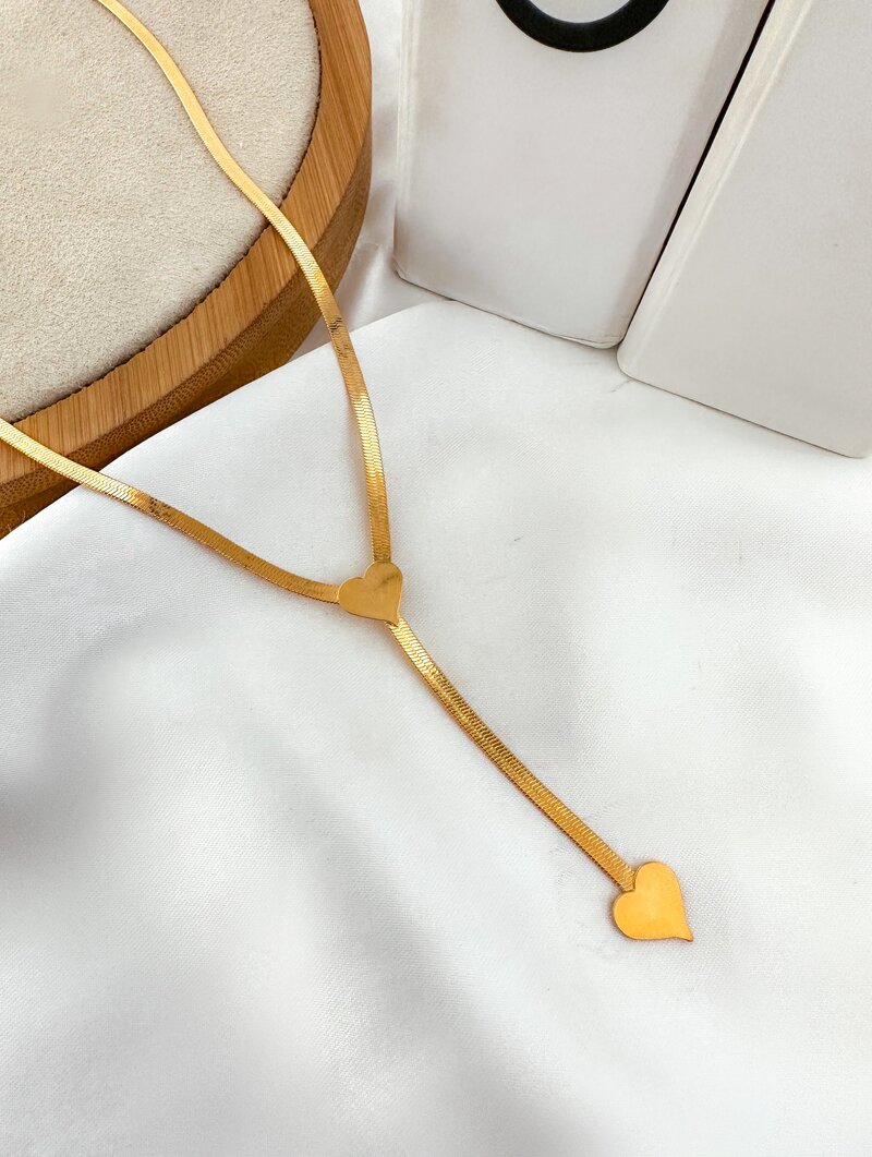colar lariat folheado a prata 925 fita laminada com coração