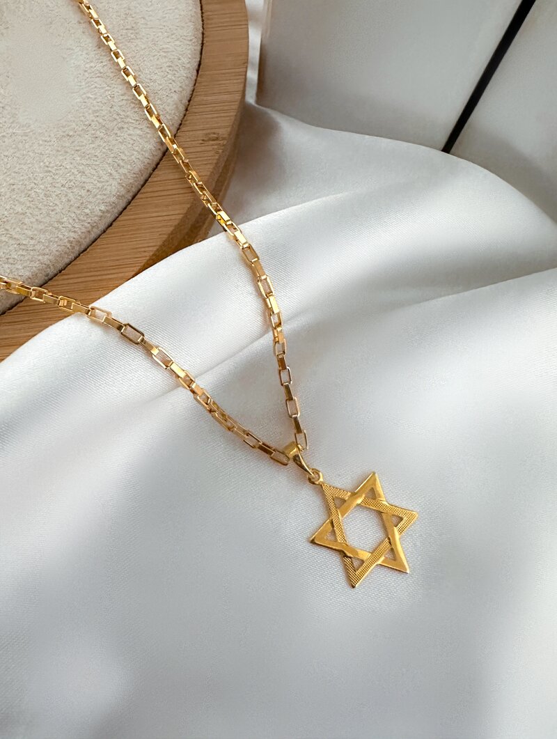 Colar Masculino Folheado a Ouro 18k Corrente Quadrada com Estrela de Davi