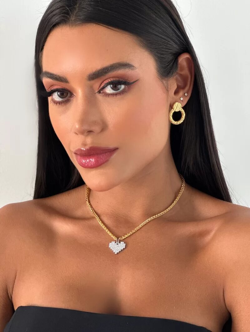3. Colar Mix Banho Pingente Coração com Micro Zircônia