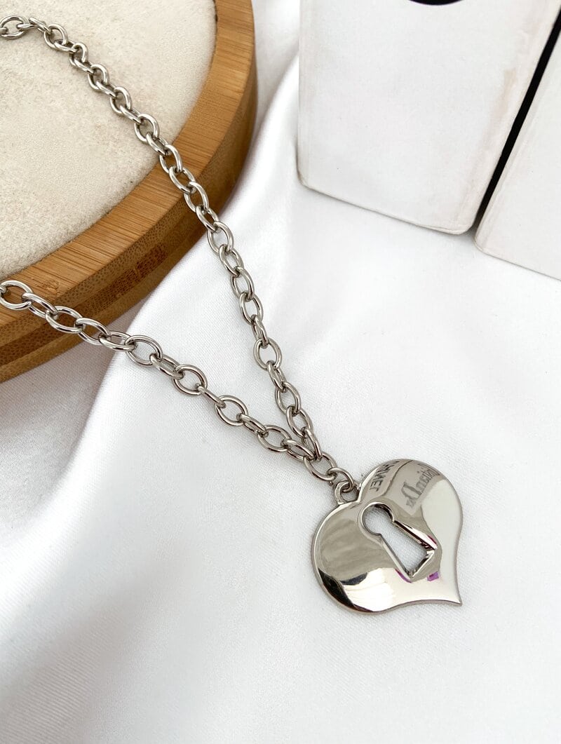 3. Colar Semi Joia Coração com Fechadura