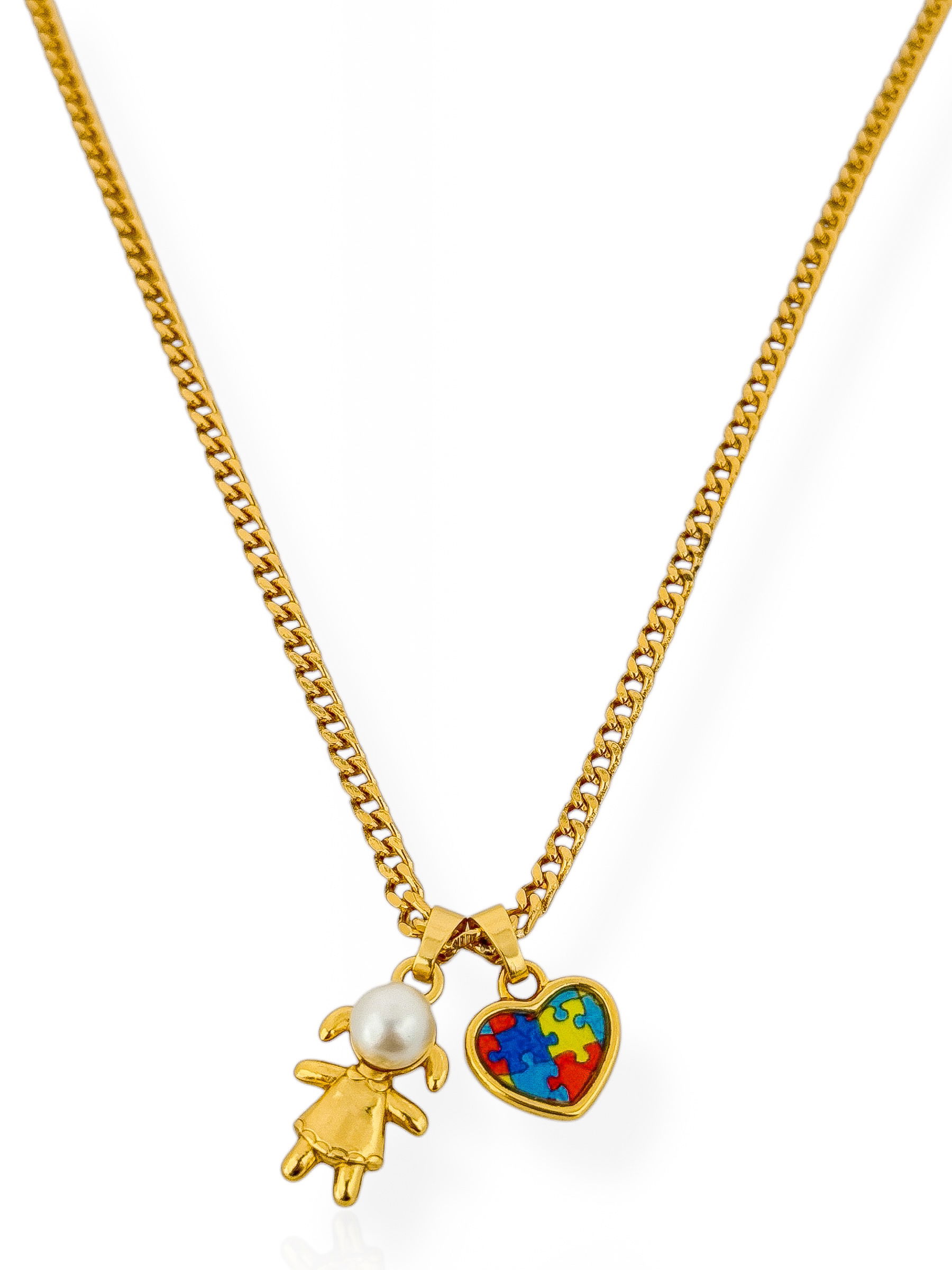 Colar Semi Joia Menino e Menina com Perola Neurodiversidade