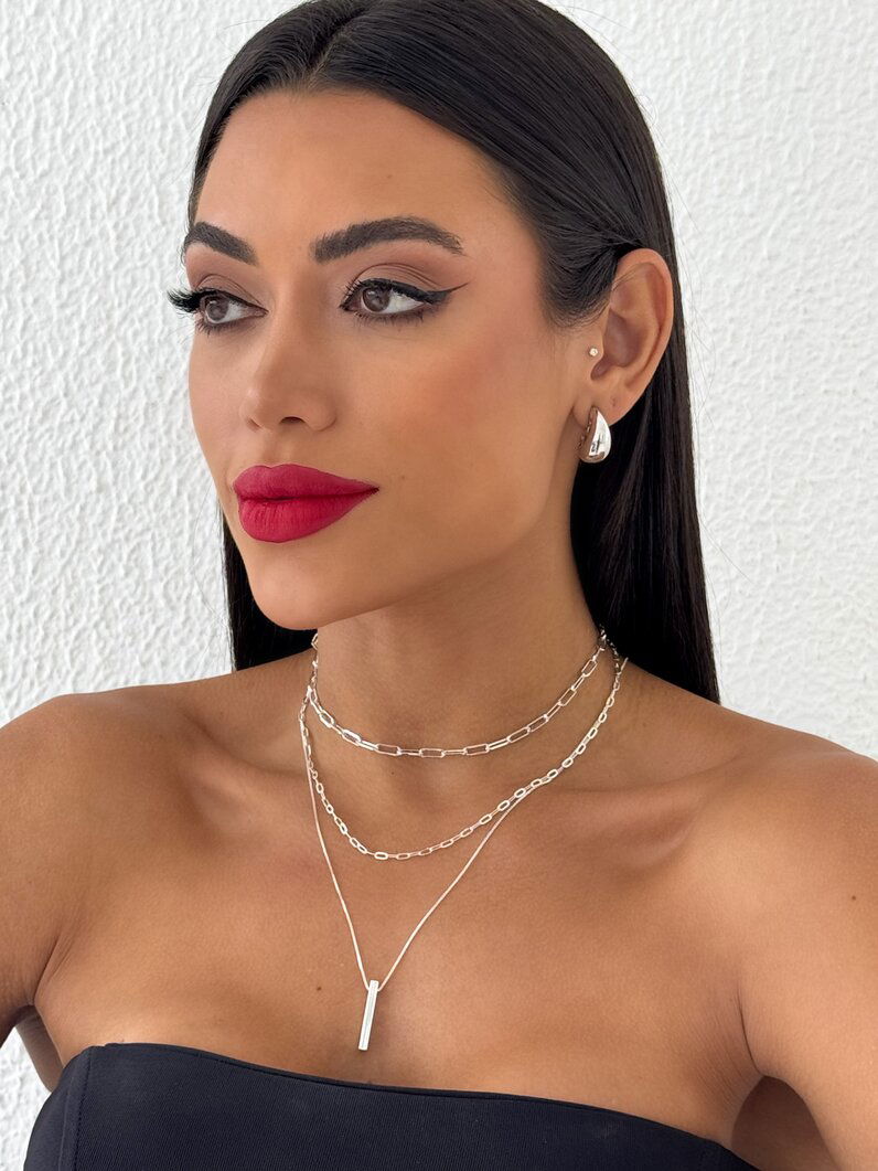 3. Colar Triplo Folhado a Prata Elos com Pingente em formato Geométrico