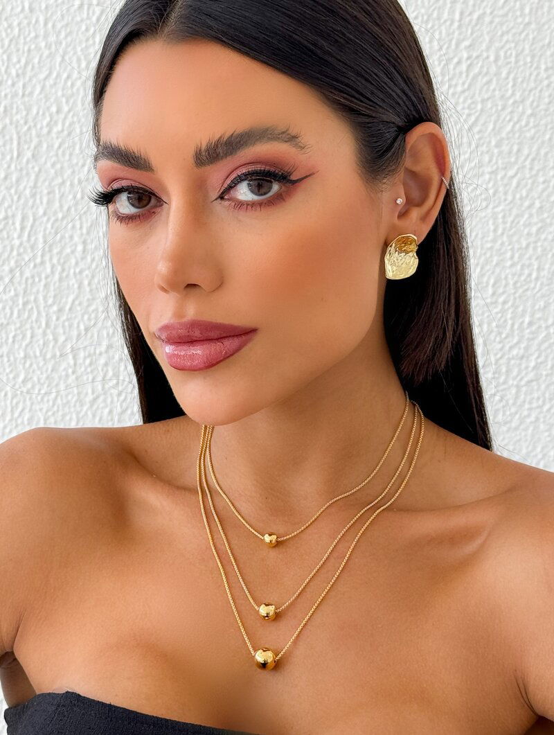 3. Colar Triplo Folheado a Ouro 18k com Esferas Lisas