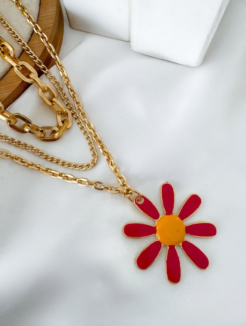 3. Colar Triplo Folheado a Ouro 18k Correntaria com Flor