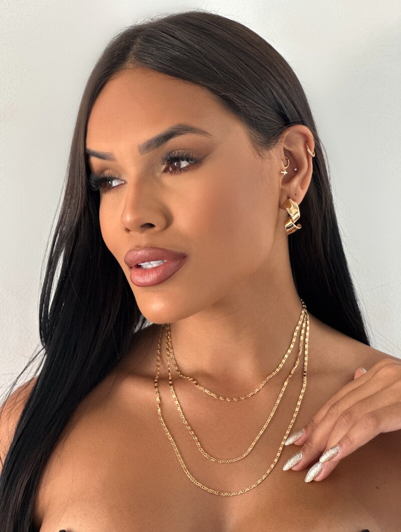 Colar Triplo Folheado a Ouro 18k Corrente Piastrine