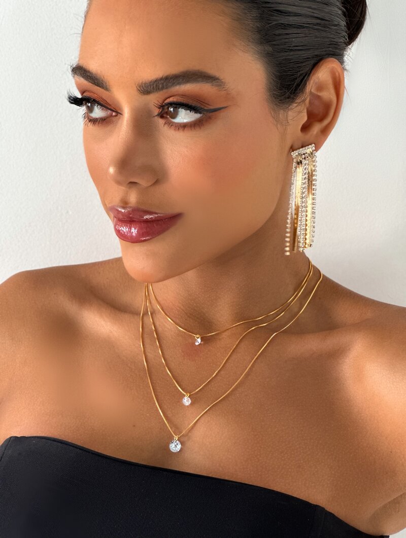 Colar Triplo Folheado a Ouro 18k e Prata 925 Com Pingentes Ponto de Luz