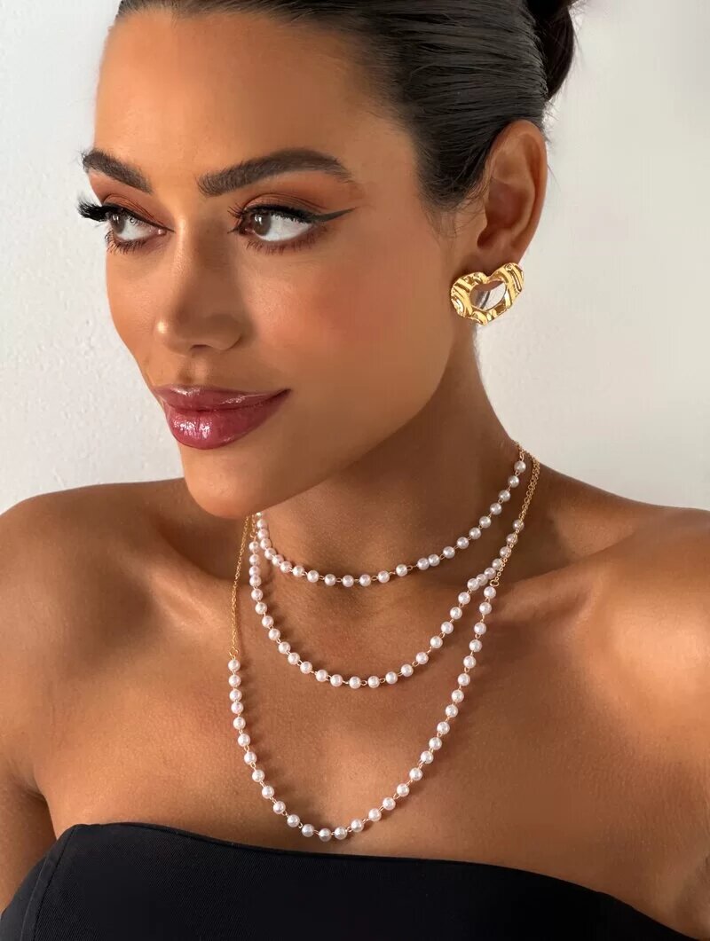 3. Colar Triplo Folheado a Ouro 18k e Prata Pérolas