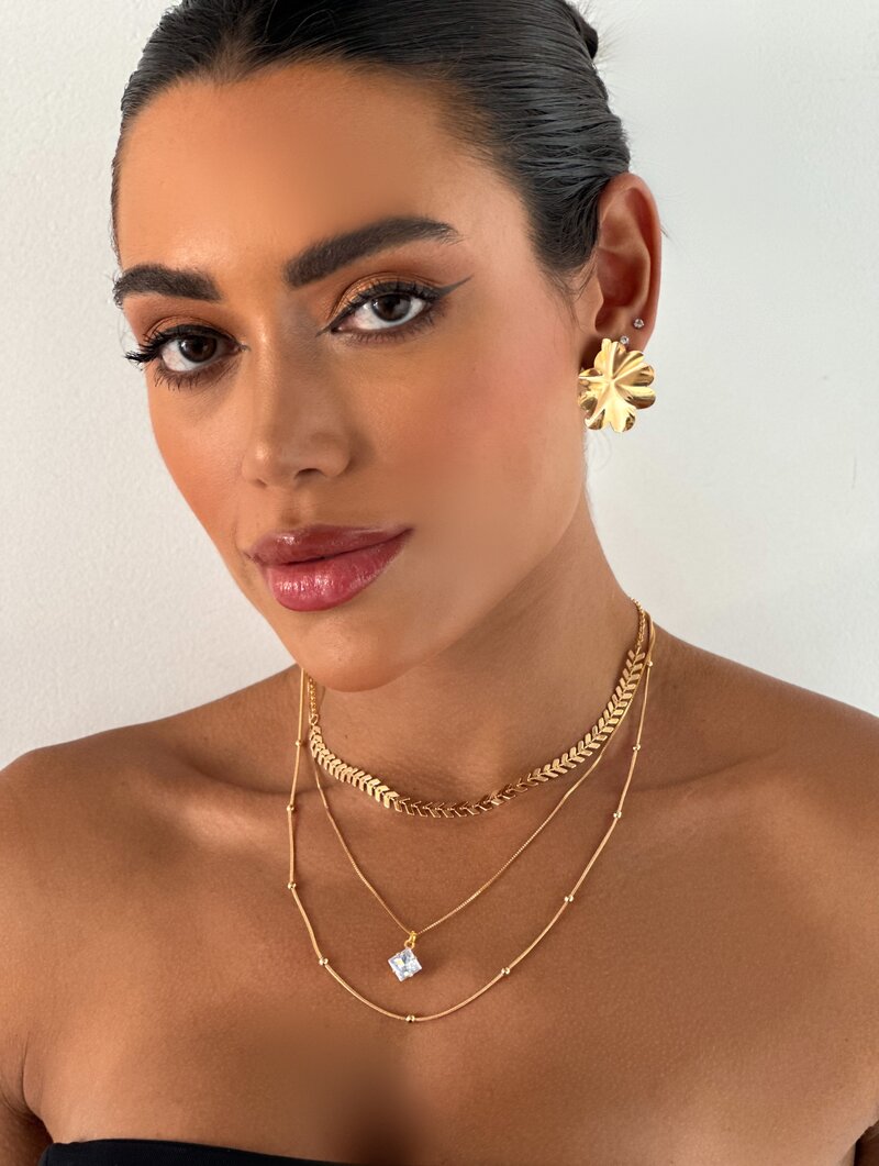 3. Colar Triplo Folheado a Ouro 18k Escamas com Zircônia