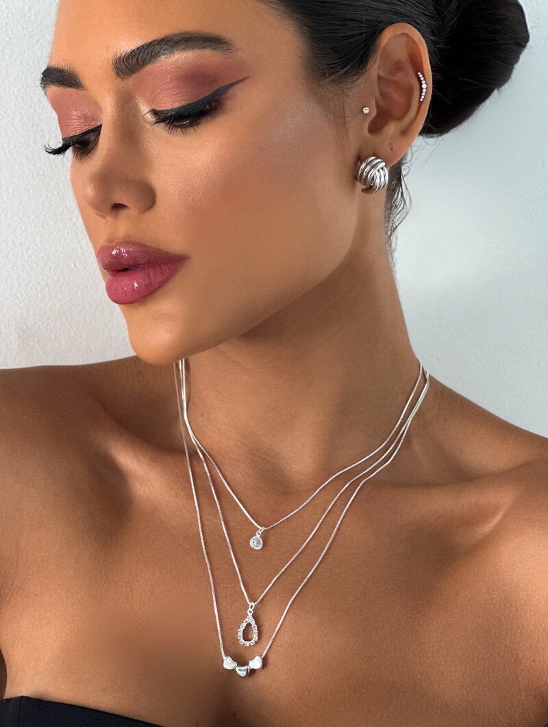 Colar Triplo Folheado a Prata 925 Gota Cravejada com Corações
