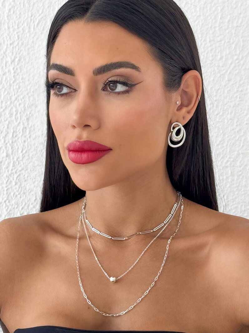 3. Colar Triplo Folheado a Prata Elos Com Esfera