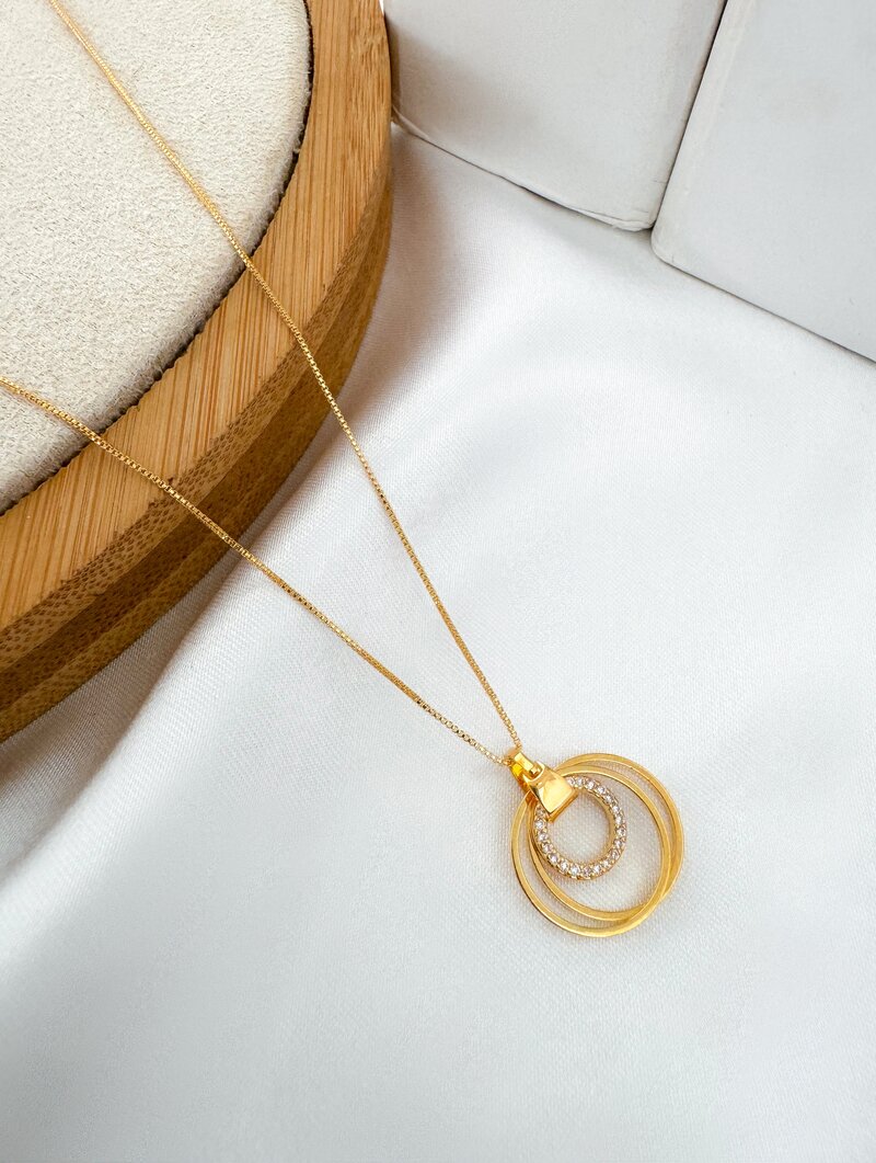 3. Colar Veneziana Folheado a Ouro 18k e Prata Circulos com Detalhe Cravejado