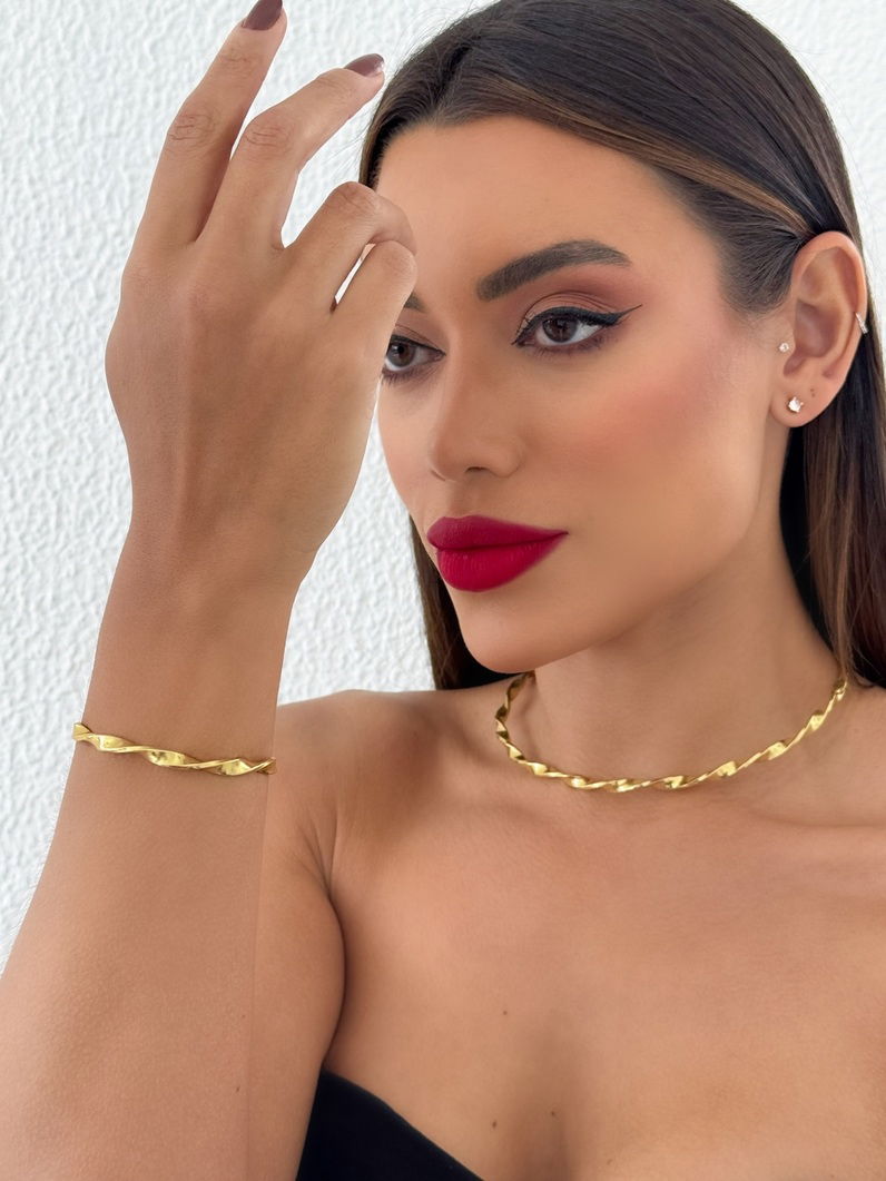 Conjunto Choker Aro e Bracelete Folheado a Ouro 18k e Prata Aro Torcido