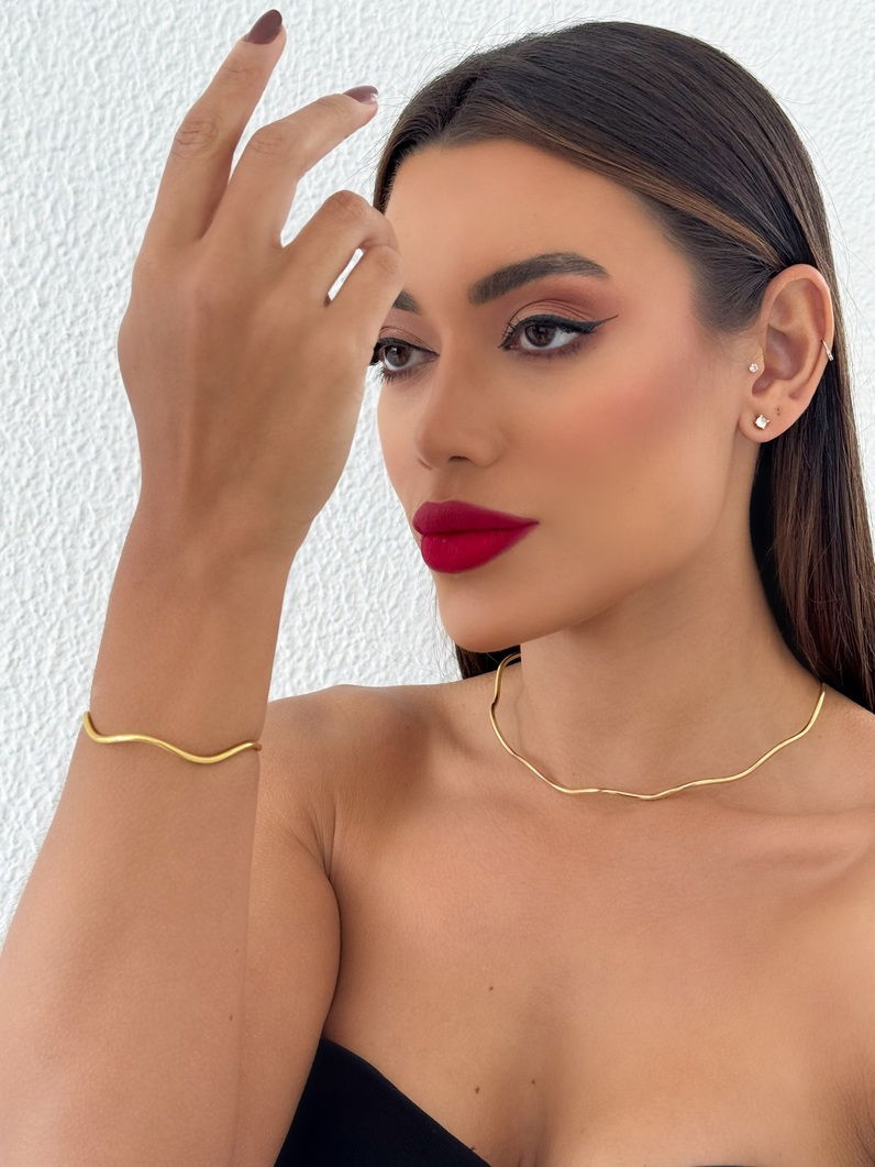 Conjunto Choker Aro e Bracelete Folheado a Ouro 18k e Prata Ondulado