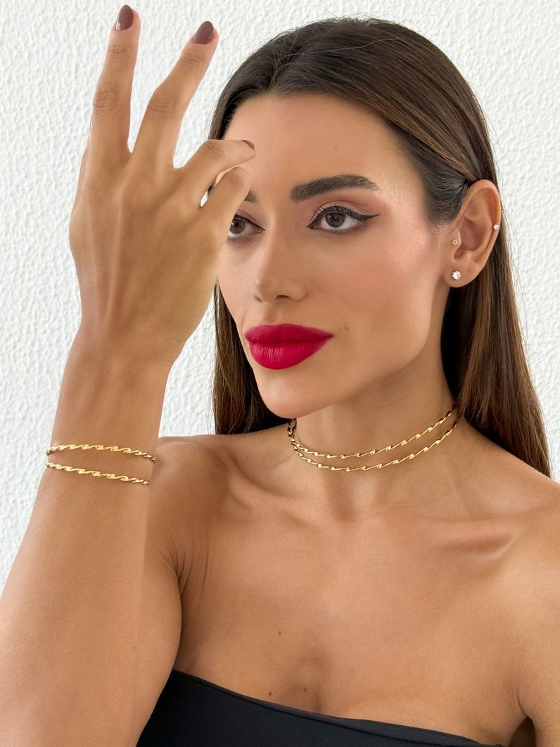 Conjunto Choker e Bracelete Folheado a Ouro 18k e Prata Aro Torcido Duplo