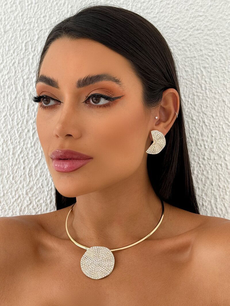 3. Conjunto Choker e Brinco Folheado a Ouro 18k e Prata Aro com Pingente Cravejado