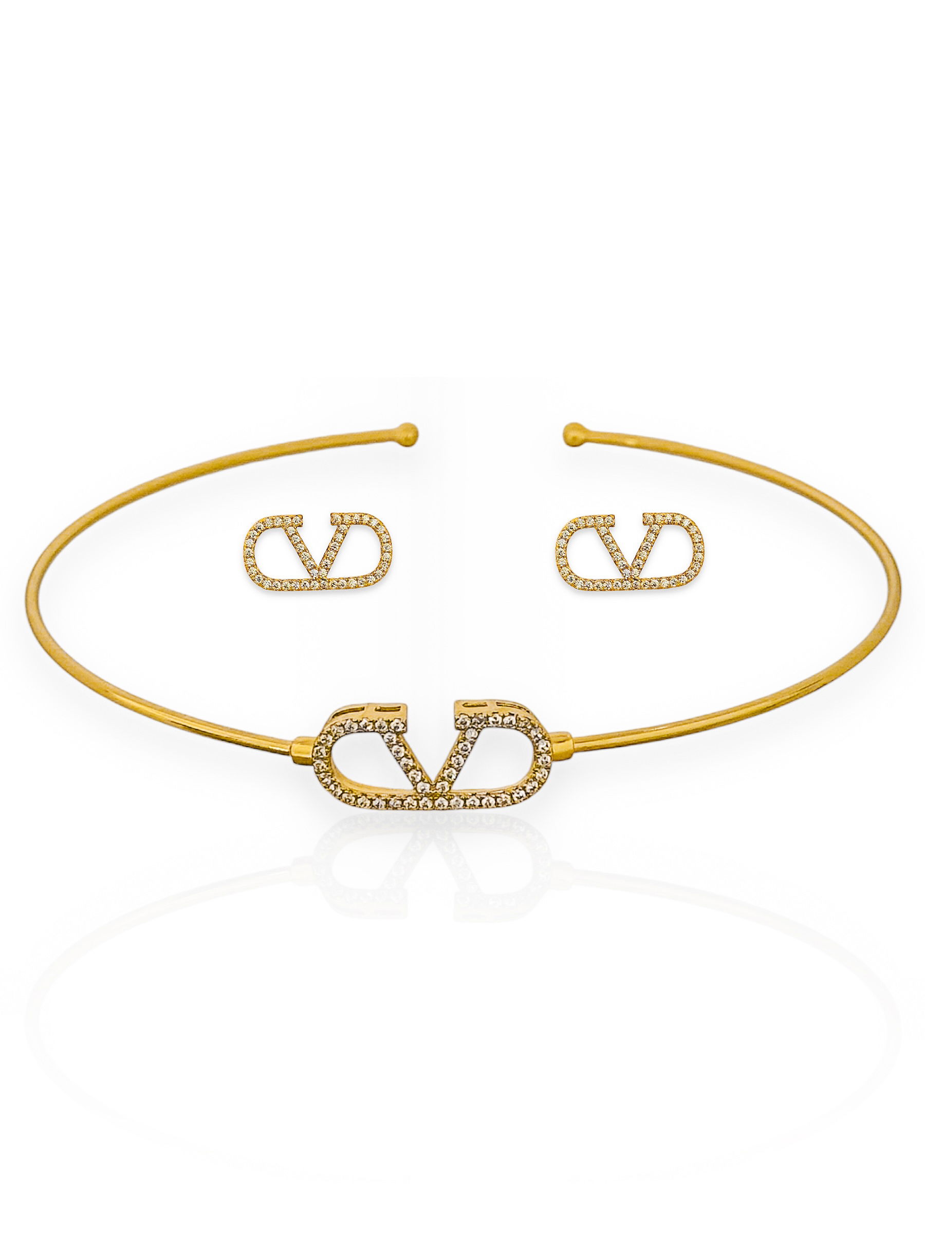 Conjunto Choker e Brinco Folheado a Ouro 18k e Prata Aro V Com Zircônia